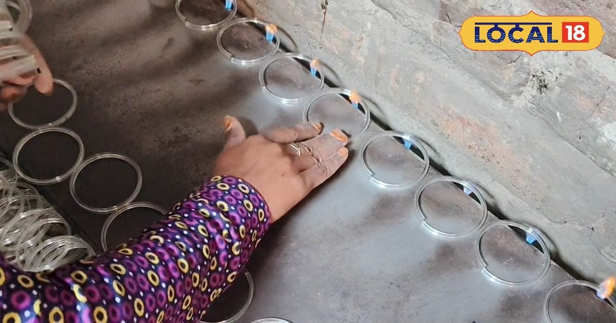 Firozabad news: फिरोजाबाद में चूड़ी की झलाई करने वाले मजदूर उदयवीर सिंह ने लोकल 18 को जानकारी देते हुए बताया कि वह पिछले 40 साल से चूड़ी झलाई और जुड़ाई का काम कर रहे हैं.उनके यहां घर पर ही गैस के जरिए चूड़ियों की झलाई की जाती है.इस काम को करने के लिए लोहे की प्लेट का इस्तेमाल किया जाता है.घर पर गैस के जरिए आग जलाकर कारखाने से लाई गई टेढ़ी चूड़ियों को गर्म किया जाता है.