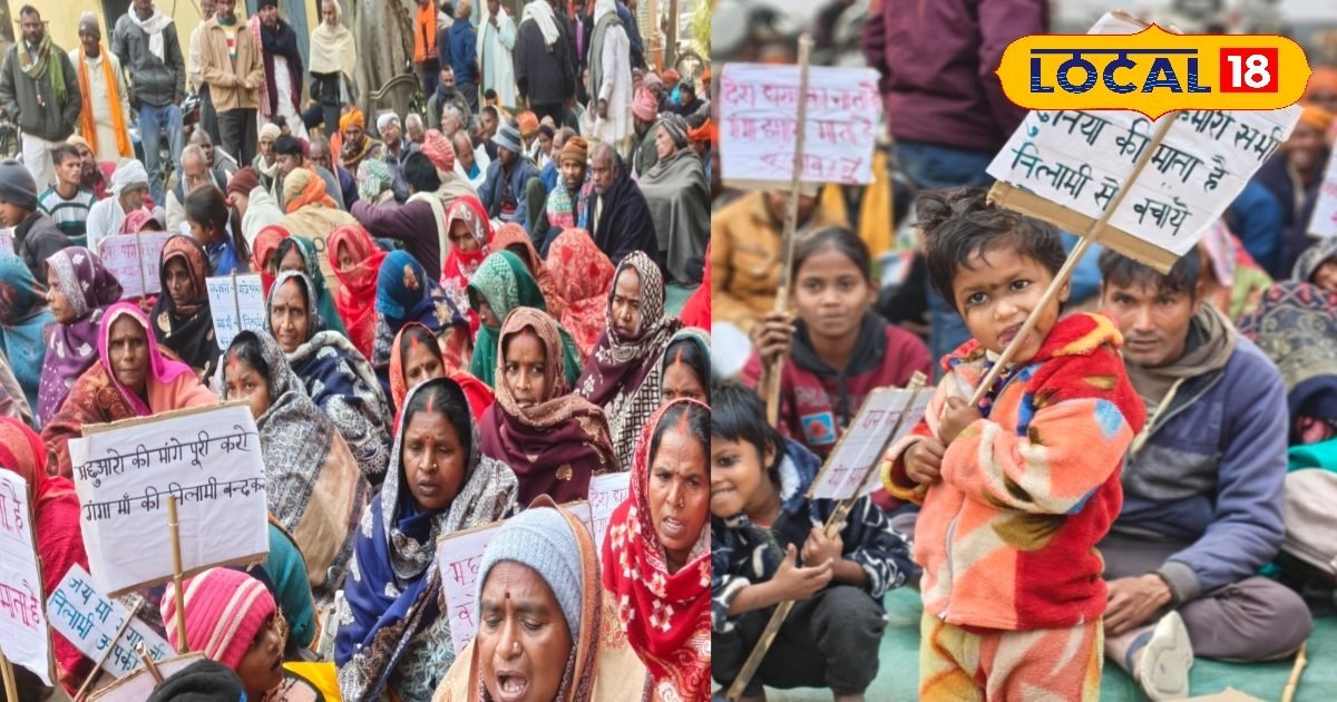 डीएम कार्यालय परिसर में एक ओर पुरुष मछुआरे “गंगा मां की नीलामी बंद करो” के नारे लगा रहे थे, तो दूसरी ओर महिलाएं रोते-बिलखते हुए गीत गा रही थीं. छोटे बच्चों की मौजूदगी ने इस विरोध को और भी संवेदनशील बना दिया. हर चेहरा चिंता और भविष्य के डर से भरा नजर आया.